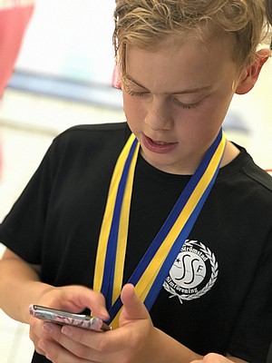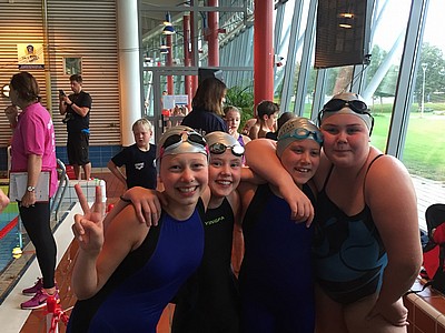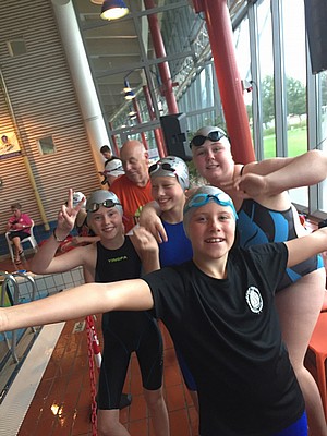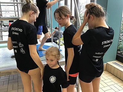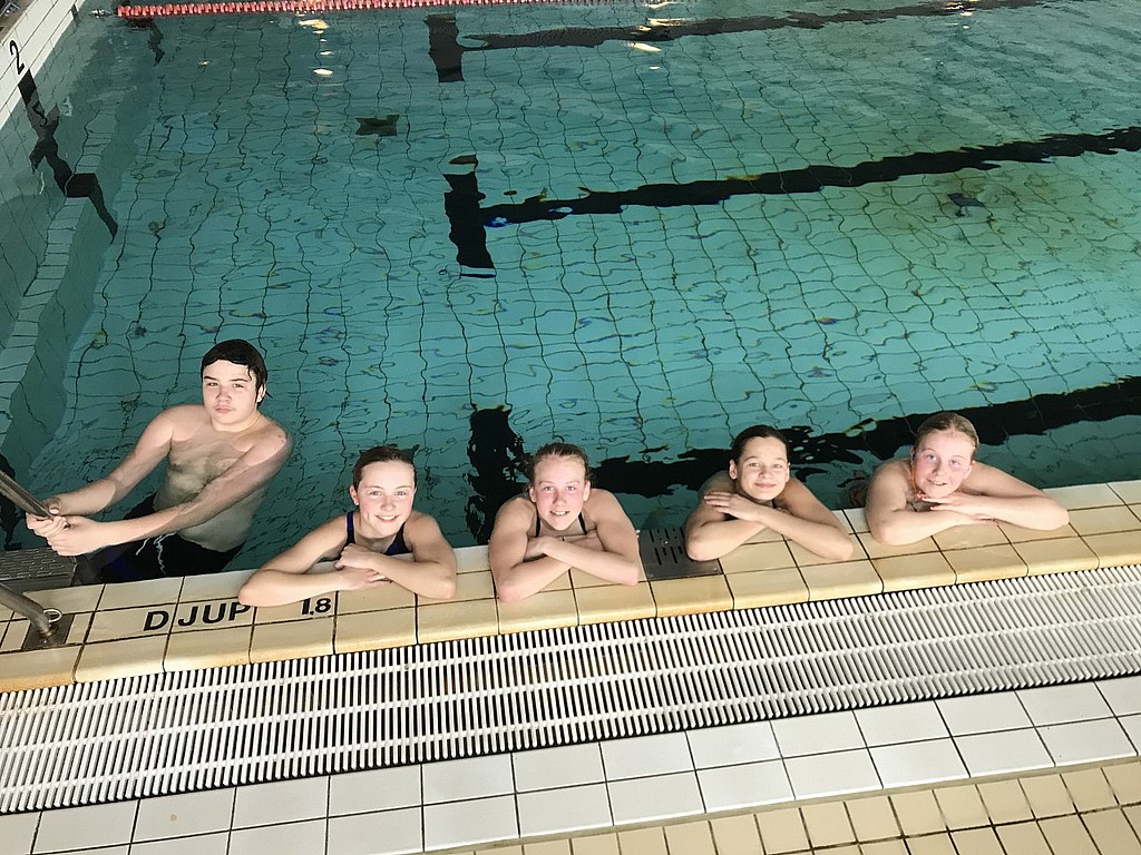 Föreningen hade ett extra insatt träningspass under söndagen. Esther, Leon, Elvira, Alva och Elsa simmade totalt 4 400 meter och de var riktigt nöjda efter dagens insats.